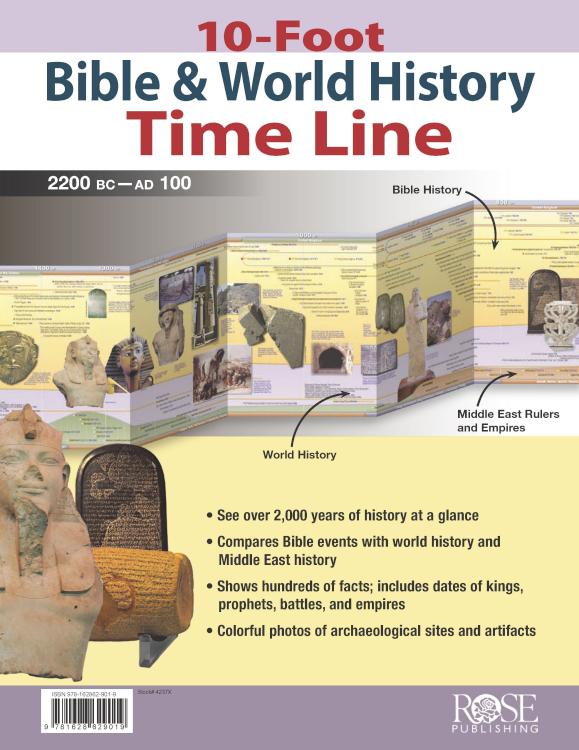 The 10-Foot Bible and World History Time Line offers a birds-eye view of history showing Christian historical events unfolding next to their world history counterparts. It’s easy to see how biblical history relates to events happening throughout the Middle East and around the world.