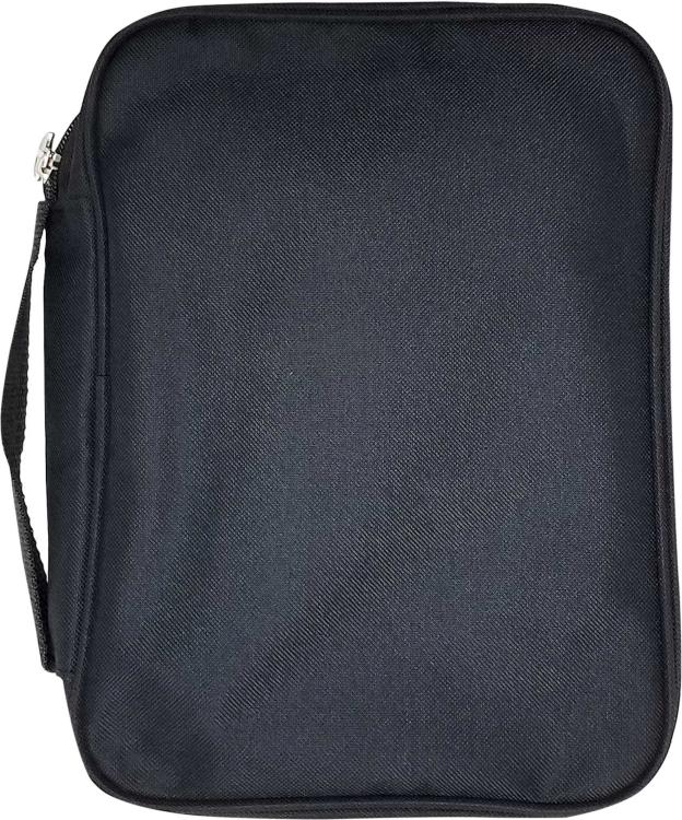 These oxford cloth cases protect the Bible while holding study accessories. Two sizes and three colors to choose from. Each with outside pocket, Armor Of God cross emblem zipper-pull and label, and 4 pen loops inside from cover.