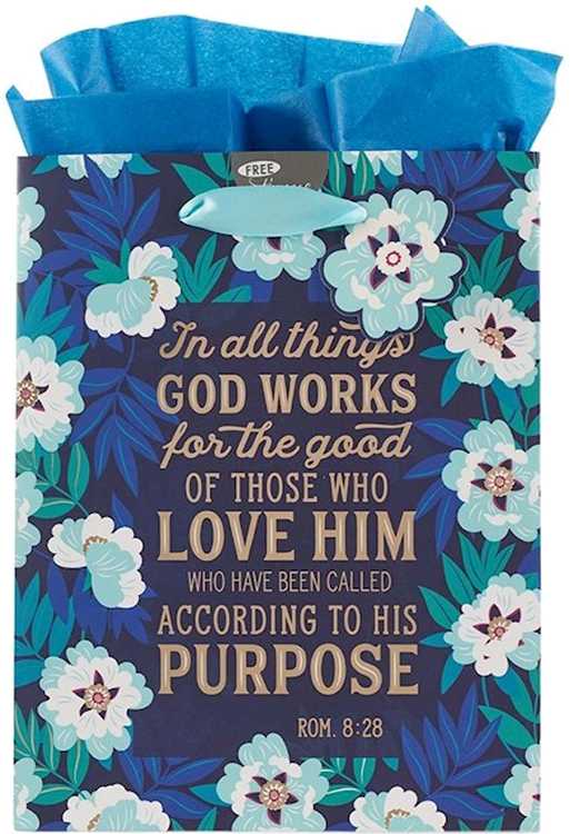 Support a friend with a care package packed in the God Works For Good Blue Floral Medium Gift Bag to show your care.
