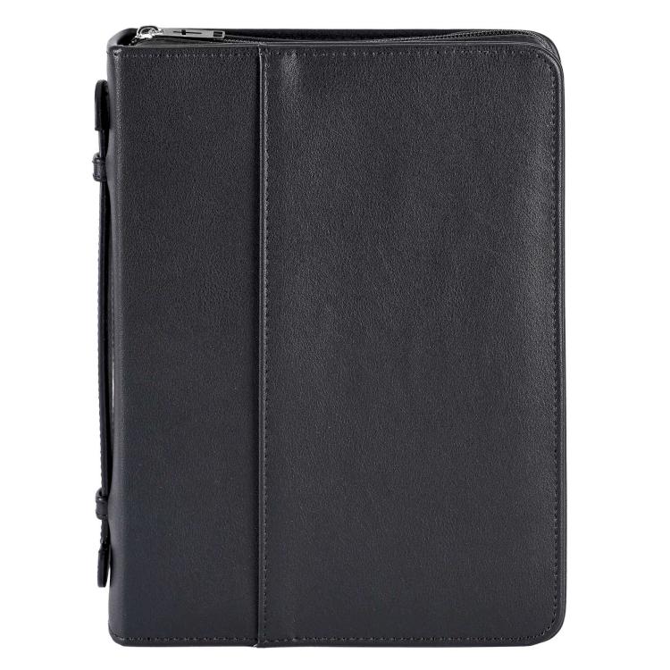 Hard Shell Style Polyurethane Bible Case. Solid Black Color. Inside Is A Bookmark & Elastic Pen Loop With Cut Thru Cross Zipper Pull; Side Handle, Non-Rusting Self-Repairing Zipper, Nylon Reinforced Stitching, Xl Dimensions: 7-1/4 x 2 x 10-1/4.