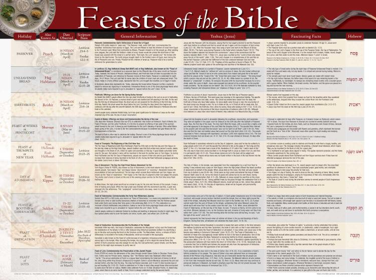 Feasts Of The Bible Wall Chart Laminated