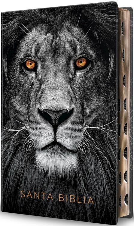 Biblia tamao manual con letra grande. Simil piel color negro y estampado dorado en la cubierta. Incluye canto dorado, cinta marcadora y fotos a color de Tierra Santa.