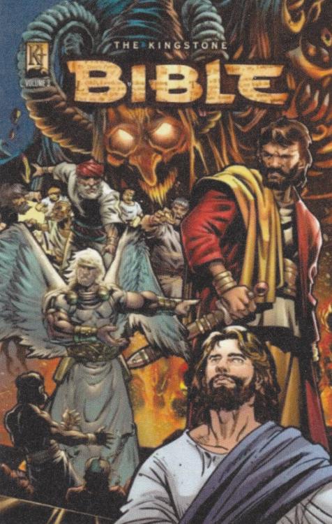 Kingstone Bible Volume 3 is a comic book Bible and graphic novel adaptation of the Word of God. This volume covers the birth of Jesus as recorded in the Gospels until the return of Jesus as told in the book of Revelation. It is the third and final volume in the Kingstone Bible series.