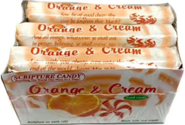 $3.95Indulge your senses with the dreamy taste of fresh oranges swirled in rich cream and discover a satisfying sensation that is uniquely Orange & Cream. Silky smooth and seductively sweet. Scripture Candy – Orange & Cream are the next best thing to the original Creme Savers. Talk about a flashback to your childhood! These dairy hard candies deliver a rich creamy taste experience just like eating a Popsicle Creamsicle Bar. Just one taste and they will become one of your favorite candies. Now you can enjoy this classical summer treat all year long. Each piece of hard candy is individually wrapped in foil and features an inspirational Bible Verse. Approximately 99 different verses. So, if you are looking to indulge yourself or for something special to share, you can t go wrong with these premium fruit and cr me swirled candies.