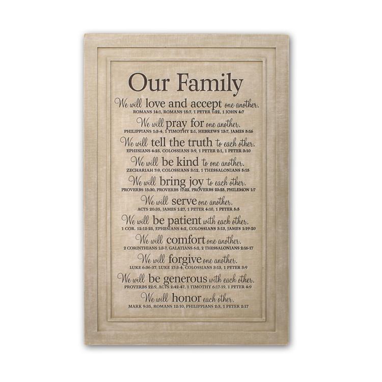 Features: wall size version of our best-selling Our Family plaque (45011), wall hanger, We All Need Hope booklet
