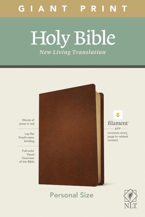 Bible Reading: IlluminatedThe new Tyndale NLT Personal Size Giant Print Bible, Filament-Enabled Edition, has readable text and an attractive layout in an easy-to-carry size. And while it has the same low price as basic, text-only Bibles, the NLT Personal Size Giant Print Bible offers much more. It not only features a bold new design and the trusted and much-loved New Living Translation (NLT) but also includes the groundbreaking Filament Bible app, which turns this Bible into a powerful study and devotional experience, offering more to expand your mind and touch your heart than you can possibly hold in your hand-at no additional cost, no additional bulk or weight. Read this Bible on its own, or dig deeper with the Filament Bible app. Use your mobile phone or tablet to connect every page to a vast array of related content, including:25,000 study notes350+ videos40+ maps and infographics400+ profiles and articles1,500+ devotionalsLibrary of worship musicSpecial features include:New, easy-to-read page designsFilament content linked to every page!Readable large printHandy, thin sizeWords of Jesus in redQuality lay-flat Smyth-sewn bindingTyndale Verse FinderPresentation pageRibbon markerGilded page edges