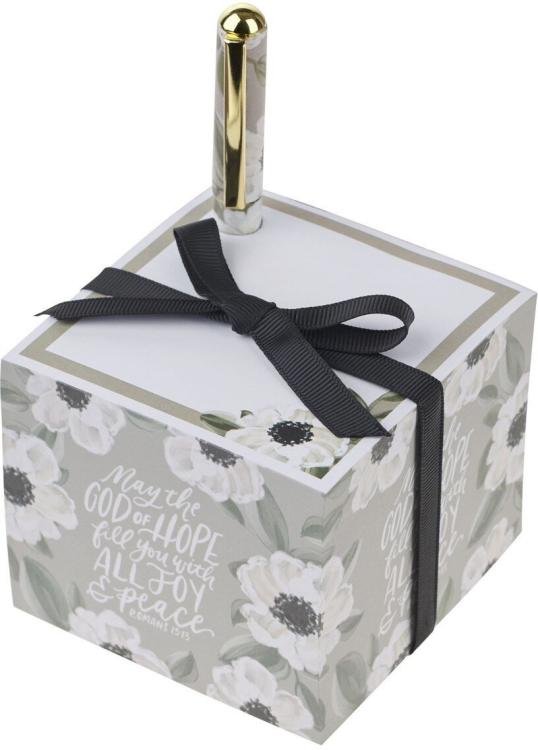 Let Scripture bring peace to even the busiest days with the Joy and Peace Monochromatic Floral Note Block with Pen Set. The verse from Romans 15:13 offers a quiet reminder of the joy that comes from knowing God with every note you write.