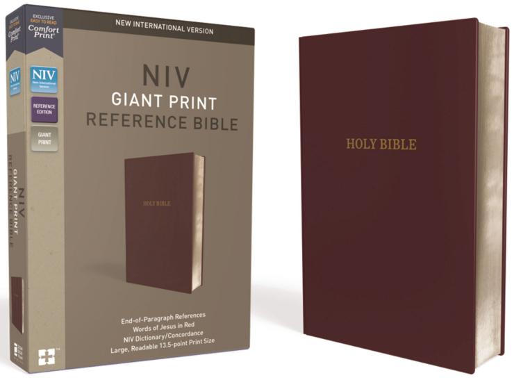 Let Scripture explain Scripture Featuring a giant, 13.6-point print size; a new, exclusive Zondervan NIV Comfort Print typeface; and an end-of-paragraph reference system – this Bible provides a clear, smooth, and easy reading experience for readers of all ages. Expertly designed for the New International Version (NIV) text, Zondervan NIV Comfort Print typeface delivers a smooth reading experience that complements the most widely read contemporary-English Bible translation. Ideal for anyone looking for a Bible that is gentle on the eyes, this NIV reference Bible includes:End-of-paragraph referencesComplete text of the accurate, readable, and clear New International VersionNIV dictionary/concordanceEight pages of full-color maps in the back of Bible for helpful referenceWords of Jesus in redExclusive Zondervan NIV Comfort Print typefaceEasy-to-read 13.6-point print size