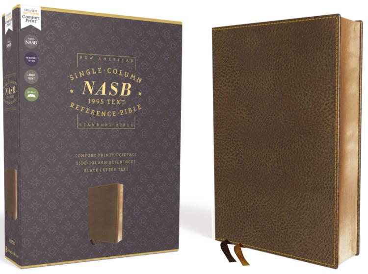 Accuracy You Can Trust.Universally recognized as the gold standard among word-for-word translations, the beloved New American Standard Bible, 1995 Edition, is now easier to read with Zondervan’s exclusive NASB Comfort PrintA(R) typeface. NASB Single-Column Reference Bibles give you the translation celebrated for faithfulness to the original biblical languages in an elegant side-column reference format allowing for both smooth reading and deep study.Features:The full text of the New American Standard Bible, 1995 EditionSide-column reference (SCR) edition with single-column Bible textNASB Concise ConcordanceTwo-color page design throughoutLine-matched Bible text minimizes see-throughBlack letter editionFull-color presentation pageEight pages of full-color mapsExquisite, durable coverPremium European Bible paper, 36 gsmTwo satin ribbon markersExclusive Zondervan NASB Comfort Print typeface